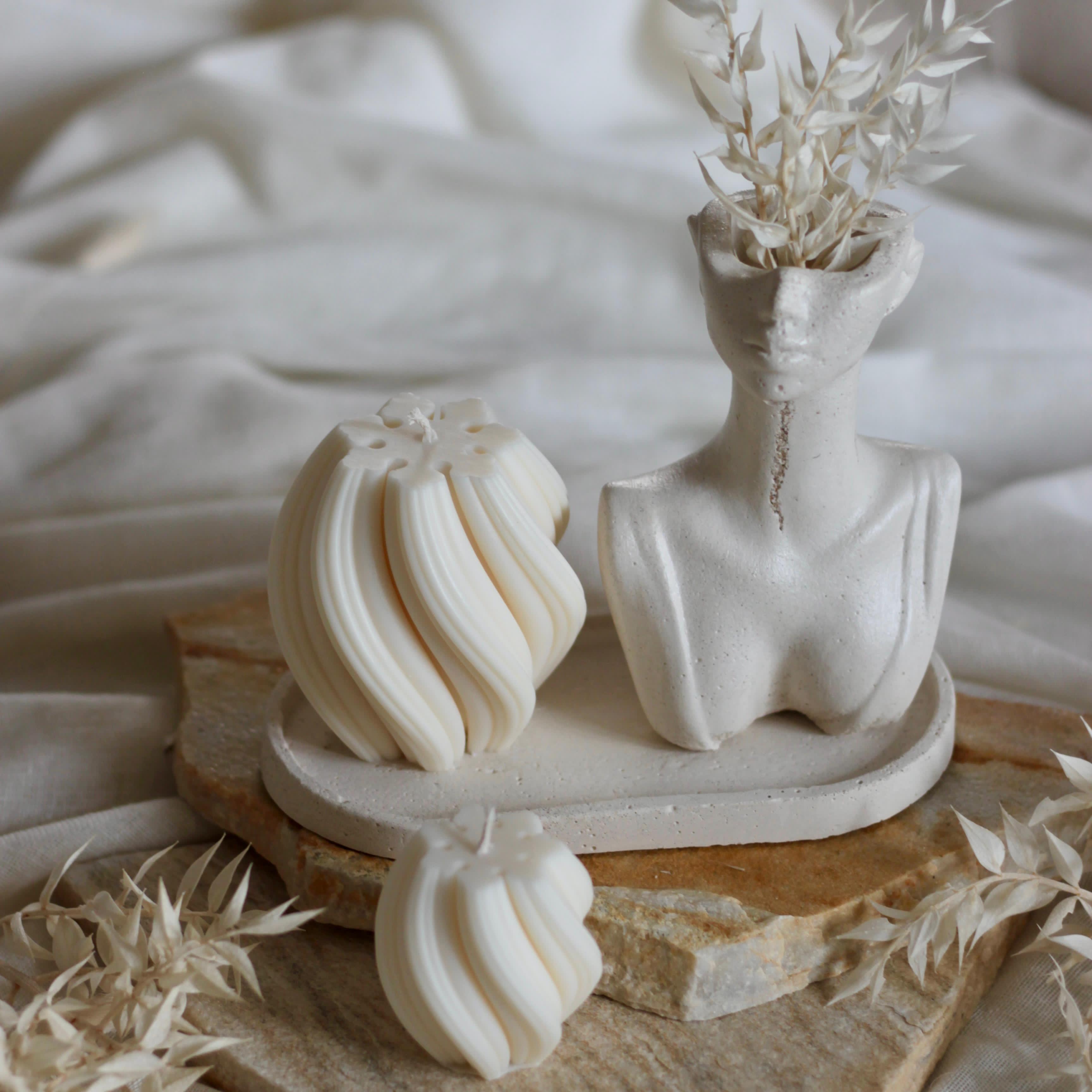 Diese Geschenkbox bringt zwei besondere Designideen zusammen: die besonderen Kerzen von maximalbeton und die ästhetische Papeterie von nina-kristin design.