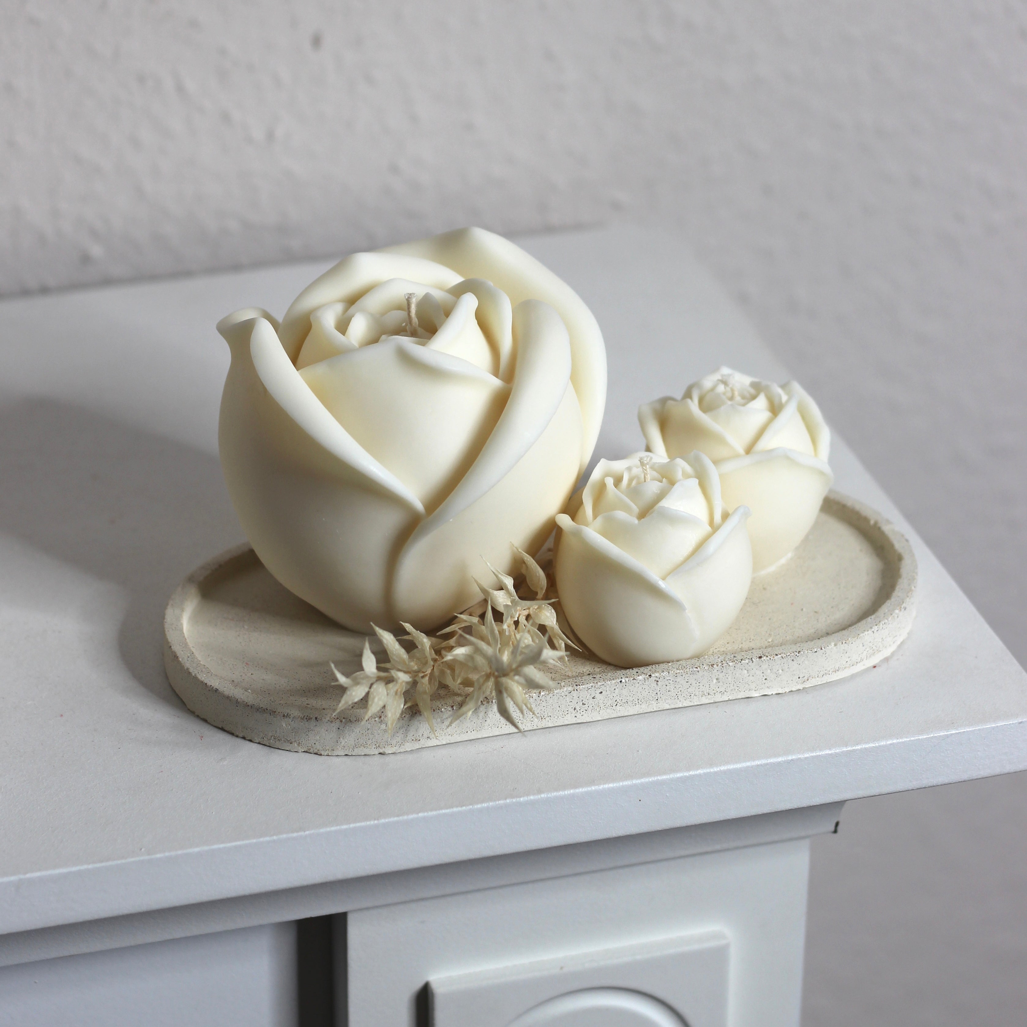 Bitte beachte: unsere Kerzen dienen hauptsächlich dekorativen Zwecken. Wenn du sie anzündest, achte darauf, eine feuerfeste Unterlage mit Rand zu verwenden, um Wachsüberlauf zu verhindern und maximale Sicherheit zu gewährleisten.