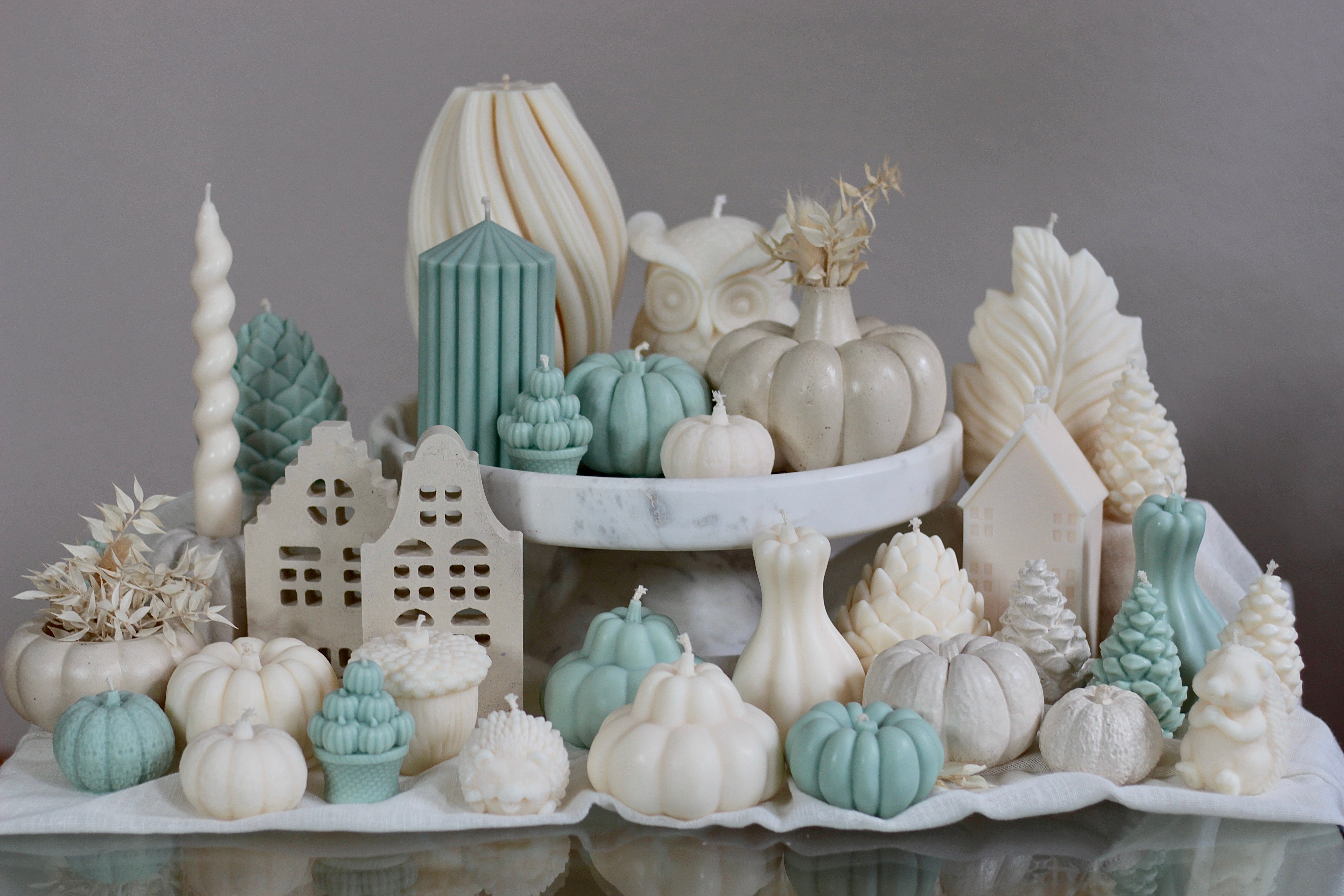 • Handgegossene Kerzen in modernem Tannenbaum-Design (Kerze Groß 7,5 cm x 7,5 cm x 12 cm & Kerze Klein 5,5 cm x 5,5 cm x 9 cm)