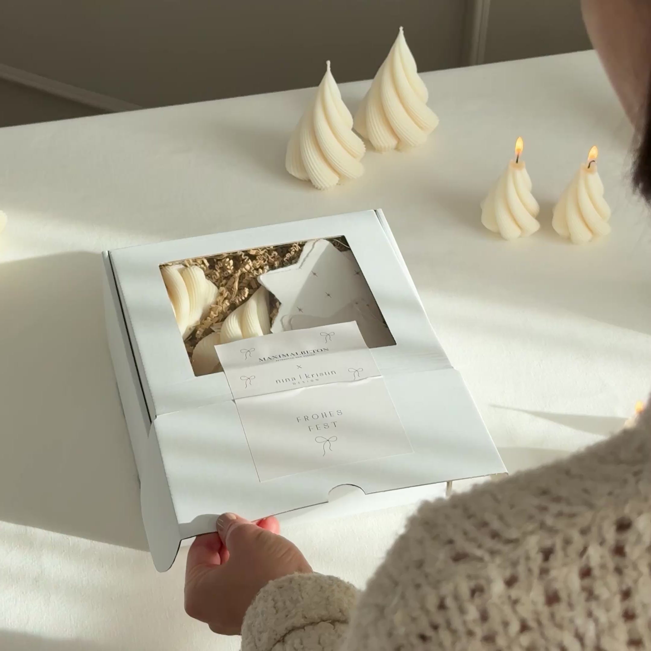 Das Set vereint puristische Schlichtheit mit handwerklichen Akzenten. Die Kerzen schaffen eine warme Atmosphäre, während die Papieranhänger sowohl am Weihnachtsbaum als auch als dekoratives Detail an Geschenken oder Zweigen ihren Platz finden.Ob als Geschenk für Designliebhaber:innen oder als Ergänzung für die eigene Dekoration – diese Box ist eine schöne Möglichkeit, die Feiertage bewusst und stilvoll zu gestalten.