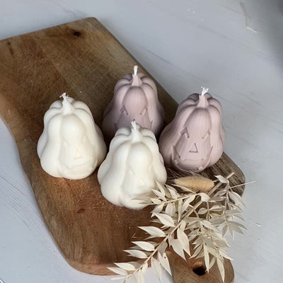 unsere Kerze Kürbis Spooky mit dem Motiv eines geschnitzten Kürbis mit Gesicht. Perfekt für den Herbst insbesondere Halloween.